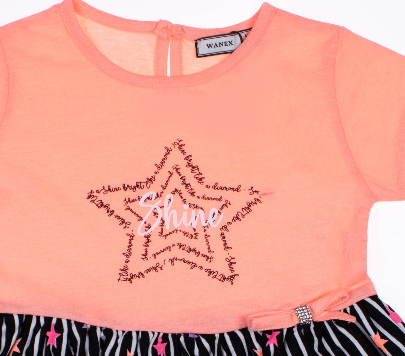 WANEX представляет новую коллекцию модных платьев для маленьких дам! Эти платья сочетают в себе стиль, комфорт и уникальность, что делает их отличным выбором для любого мероприятия. Отрезная юбка придает особый шарм каждому образу, а стильный принт добавляет яркие нотки и делает платье по-настоящему модным. Платье изготовлено из качественного трикотажа кулирка, что делает его мягким и приятным к телу. Застежка на пуговицу на спинке обеспечивает легкость надевания и снятия платья, что важно для активных деток. У нас вы можете заказать платья WANEX оптом, чтобы порадовать своих маленьких клиентов стильными и качественными нарядами. Не упустите возможность предложить им лучшее из мира детской моды!