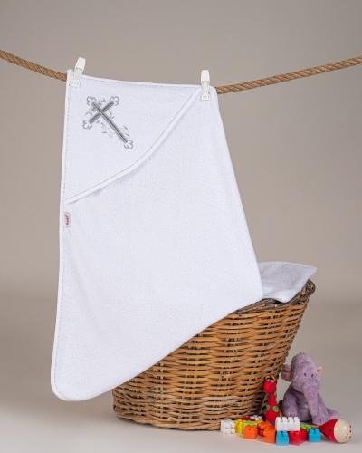 Полотенце для сокровенного таинства крещения выполнено в традиционном стиле.Белый цвет полотенца для крещения олицетворяет чистоту и невинность, а декор с изображением православного креста символизирует веру и благо. По традиции в крестильное полотенце оборачивают только что крещенного малыша, а затем бережно хранят на протяжении жизни и используют как оберег, наделенный особой силой.